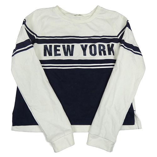Bílo-tmavomodrá crop mikina s pruhy a nápisem H&M