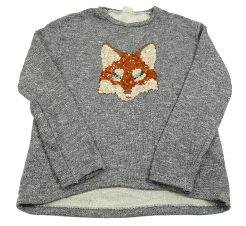 Šedá melírovaná pletená mikina s liškou z flitrů Zara