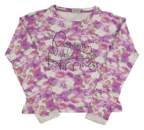 Bílo-fialovo-růžové květované crop triko s nápisem Yigga