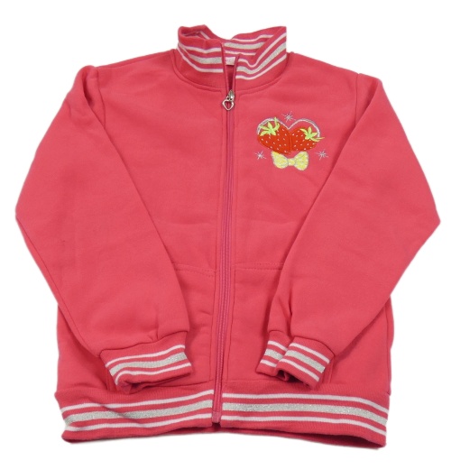 Tmavorůžová propínací teplá mikina s jahůdkami a mašlí a pruhy
