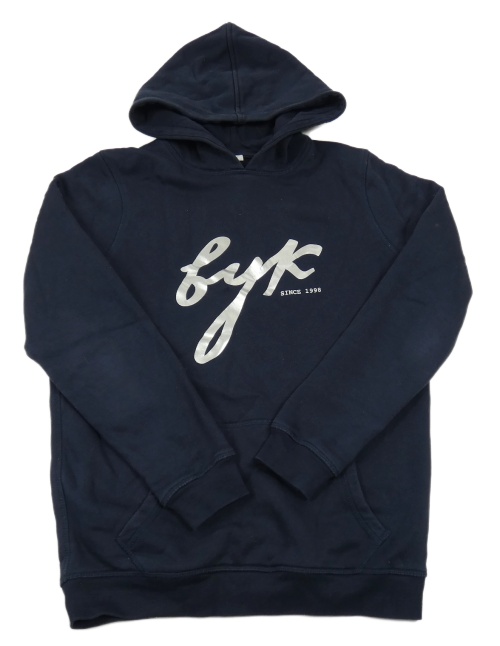 Tmavomodrá mikina s nápisem a kapsou a kapucí JAKO
