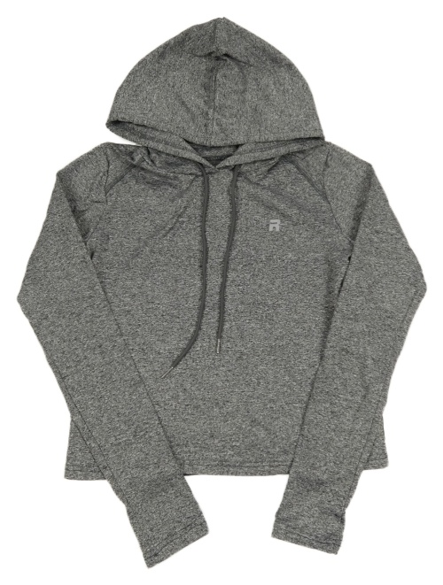 Šedá melírovaná sportovní crop mikina se vzorem a kapucí