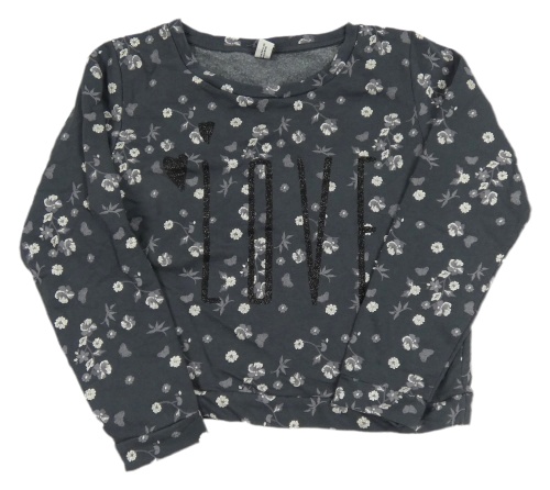 Tmavošedá crop mikina s kytičkami a motýlky a třpytivým nápisem YIGGA