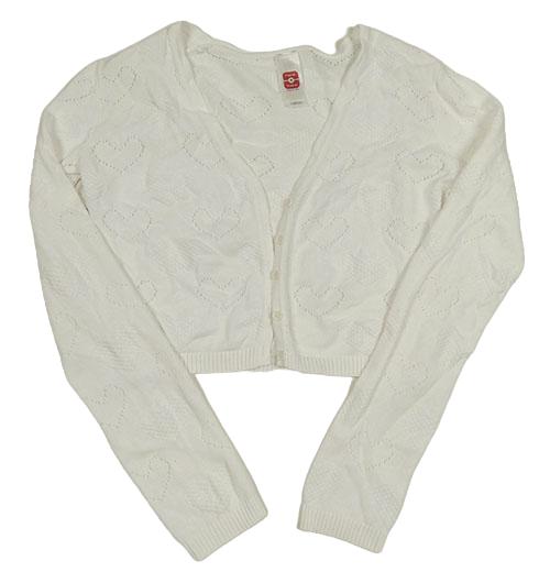 Bílý propínací crop svetr s perforovanými srdíčky C&A