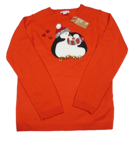 Nové - Červený svetr s tučňáky Primark
