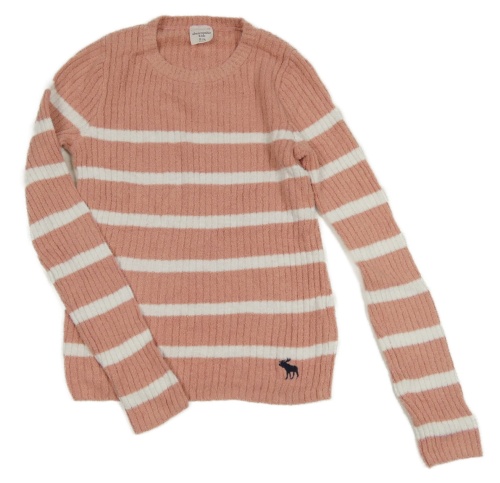 Růžovo-bílý pruhovaný žebrovaný svetr Abercrombie&Fitch