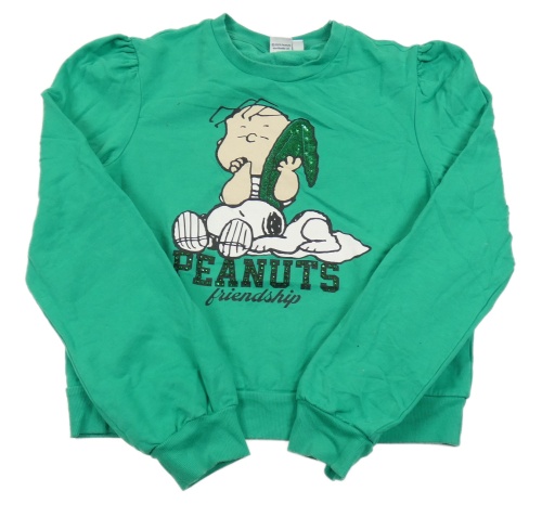 Zelená crop mikina s potiskem - Snoopy a Linus van Pelt a flitry a kamínky