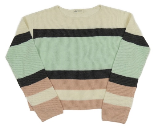 Mintovo-smetanvo-šedý pruhovaný lehký crop svetr H&M