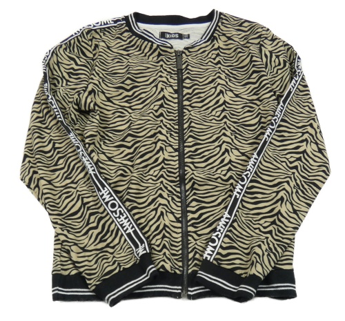 Hnědo-černá vzorovaná propínací mikina s nápisy na rukávech
