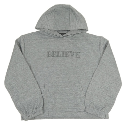 Šedá melírovaná kostkovaná/prošívaná crop mikina s nápisem a kapsou a kapucí PRIMARK
