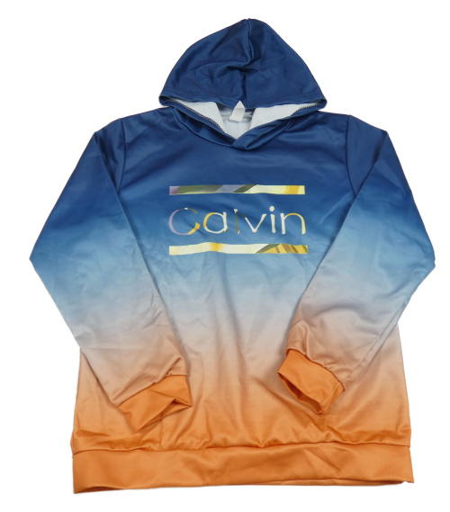 Modro-oranžová tónovaná mikina s nápisem a kapucí