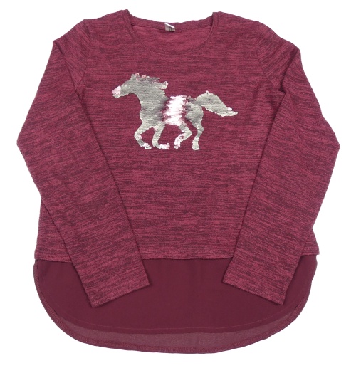 Vínový melírovaný lehký svetr s koníkem z flitrů Yigga