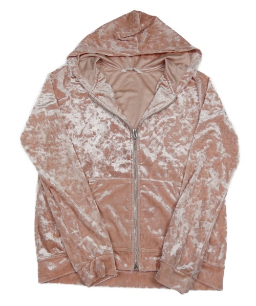 Světlerůžová sametová propínací mikina s kapucí H&M