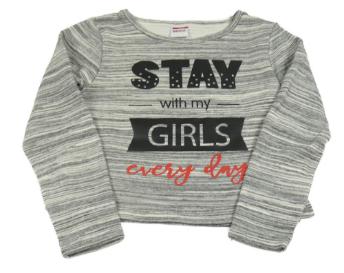 Šedo-bílá pruhovaná melírovaná silnější crop mikina s nápisy YIGGA