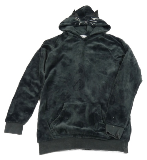 Černošedá puntíkatá plyšová mikina s kapsou a kapucí - kočička H&M