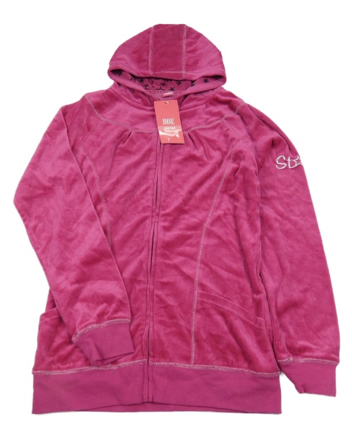 Nové - Fuchsiová sametová propínací mikina s nápisem a kapucí X-mail
