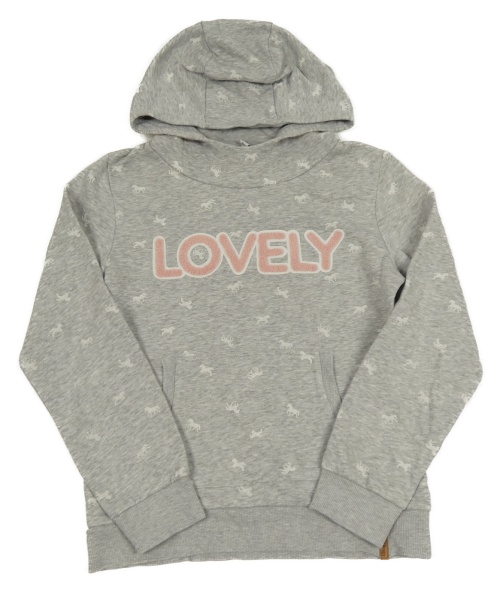 Šedá melírovaná mikina s nápisem a koníky a kapsou a kapucí YIGGA