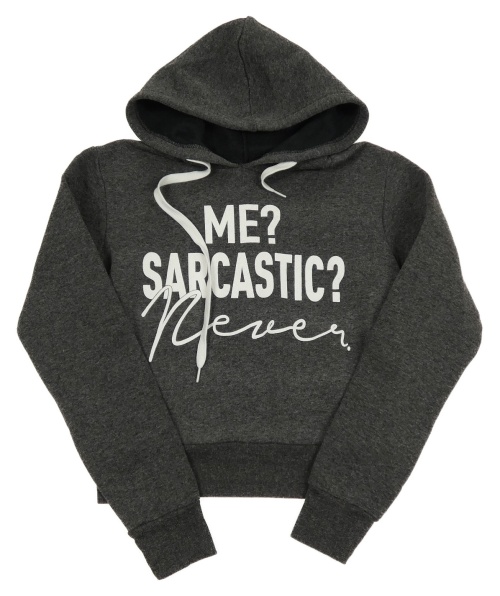 Tmavošedá melírovaná crop mikina s nápisem a kapucí