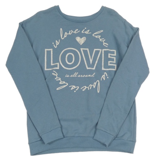 Modrošedá mikina s nápisy a srdíčkem Y.F.K.