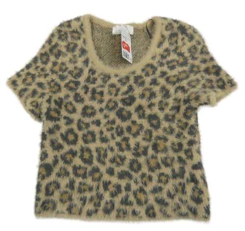 Nové - Béžovo-šedá svetrová crop chlupatá vesta s leopardím vzorem H&M