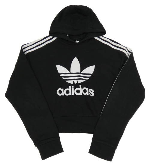 Černá crop mikina s pruhy a logem a kapucí Adidas