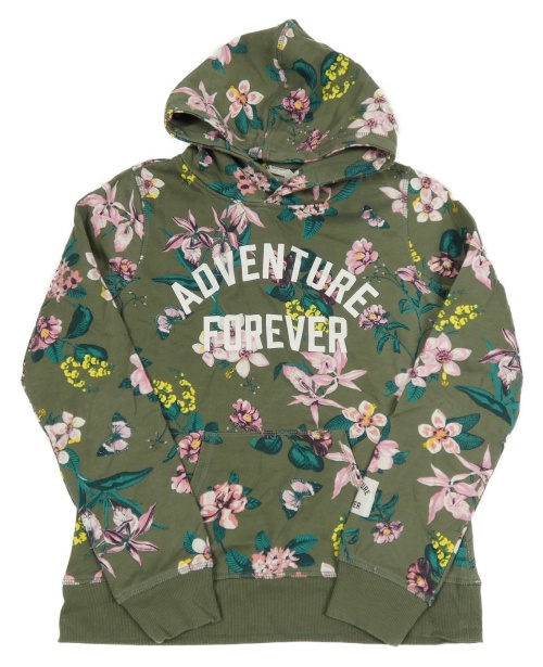 Khaki květovaná mikina s nápisem a kapucí H&M