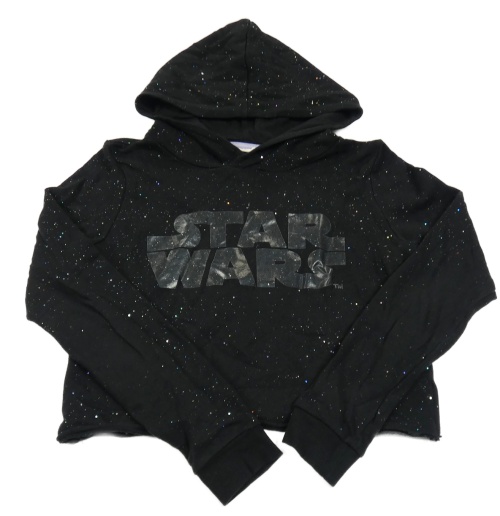 Černá třpytivá crop mikina se Star Wars a kapucí