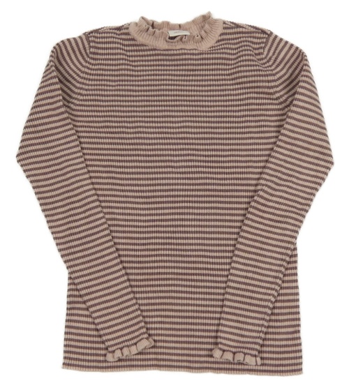 Hnědo-starorůžový pruhovaný žebrovaný svetr s volánky S. Oliver