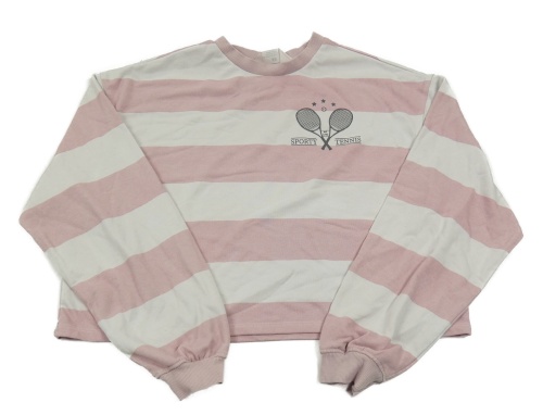 Růžovo-pudrová pruhovaná crop mikina s tenisovými raketami H&M