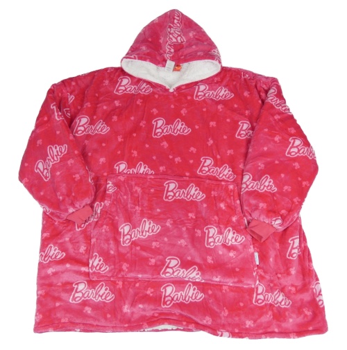 Neonově růžová chlupatá oversize mikina s kapucí - Barbie