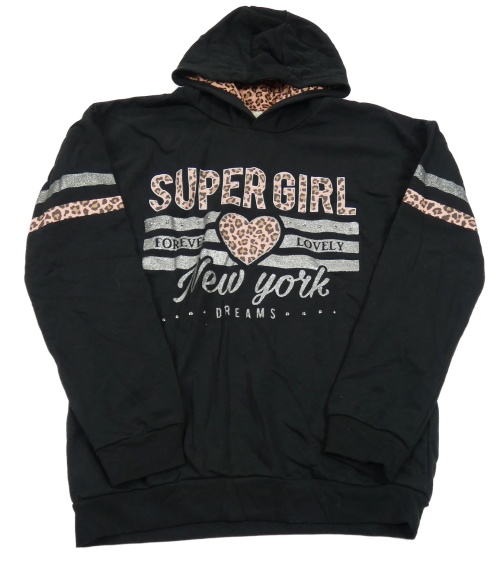 Černá mikina s nápisy a srdíčkem a cvočky a pruhy a kapucí LC WaIKIKI