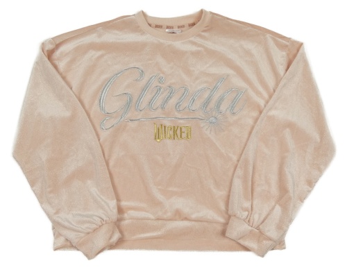 Světlerůžová sametová třpytivá crop mikina s nápisem Wicked