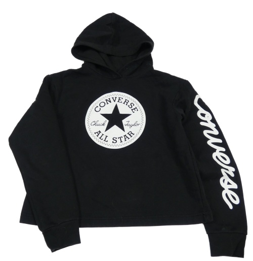 Černá crop mikina s logem a kapucí Converse