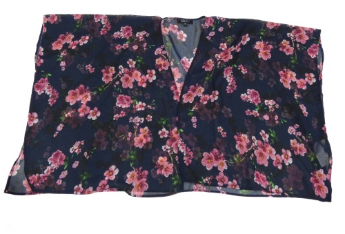 Tmavomodro-růžový květovaný šifonový lehký cardigan New Look