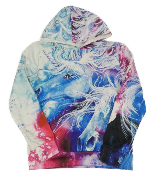 Bílo-modro-růžová vzorovaná mikina s kapucí