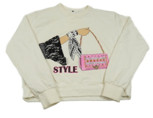 Smetanová crop mikina s kabelkou a kamínky