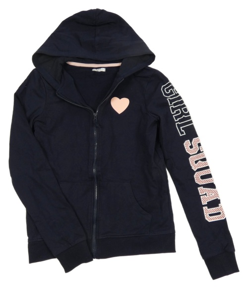 Tmavomodrá propínací mikina se srdcem a kapucí