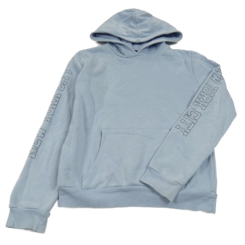 Světlemodrá crop mikina s nápisy na rukávech a kapucí C&A