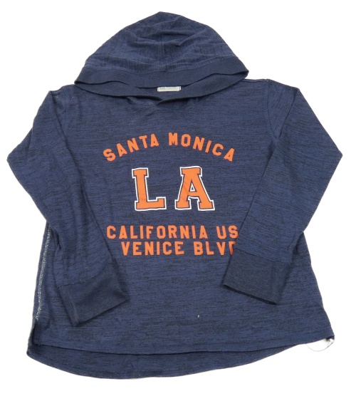 Tmavomodrý melírovaný pletený svetr s nápisy a kapucí H&M
