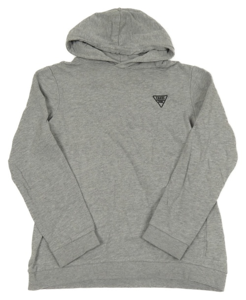 Šedá melírovaná mikina s nápisem a kapucí Manguun