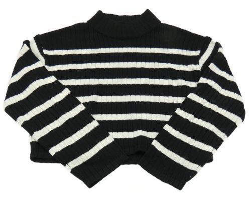 Černo-bílý pruhovaný žebrovaný crop svetr H&M
