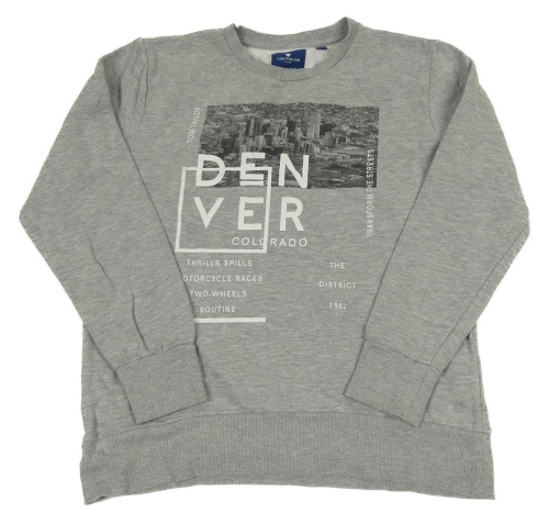 Šedá melírovaná mikina s potiskem města a nápisy TOM TAILOR