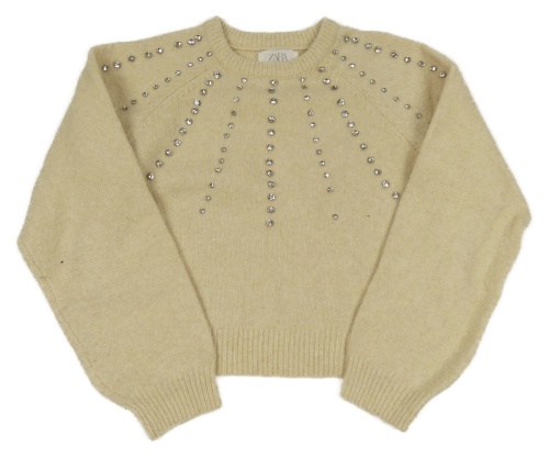 Světlebéžový melírovaný crop svetr s kamínky ZARA
