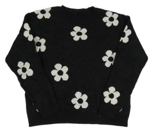 Černý crop svetr s bílými květy