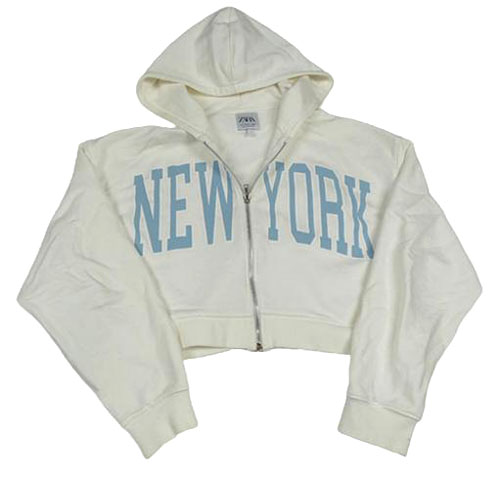 Smetanová propínací crop mikina s nápisem a kapucí Zara