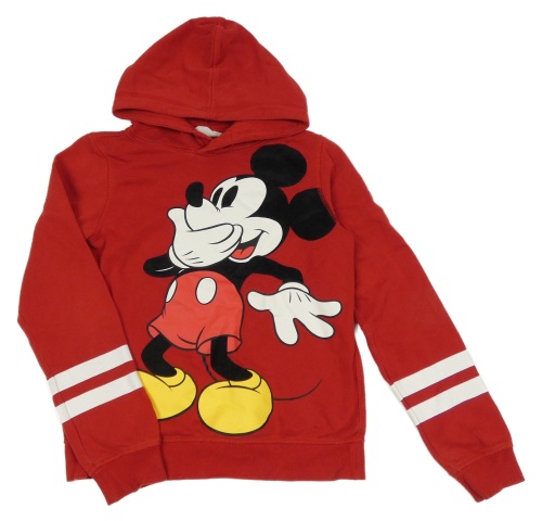 Červeno-bílá mikina s Mickeym a kapucí H&M