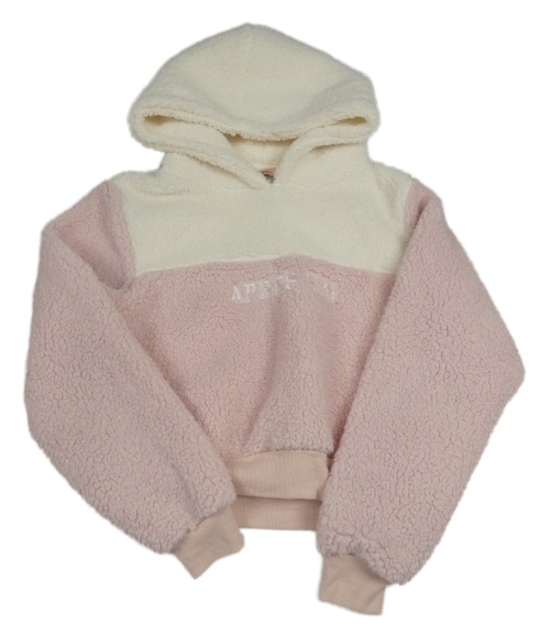 Světlerůžovo-smetanová huňatá crop mikina s nápisem a kapucí