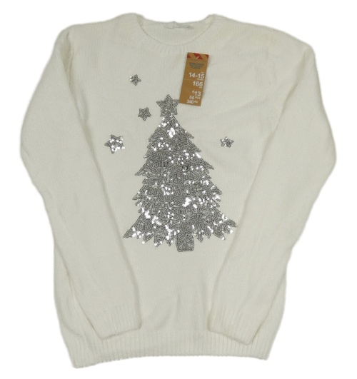 Nové - bílý žinylkový svetr s vánočním stromečkem a hvězdičkami z flitrů PRIMARK