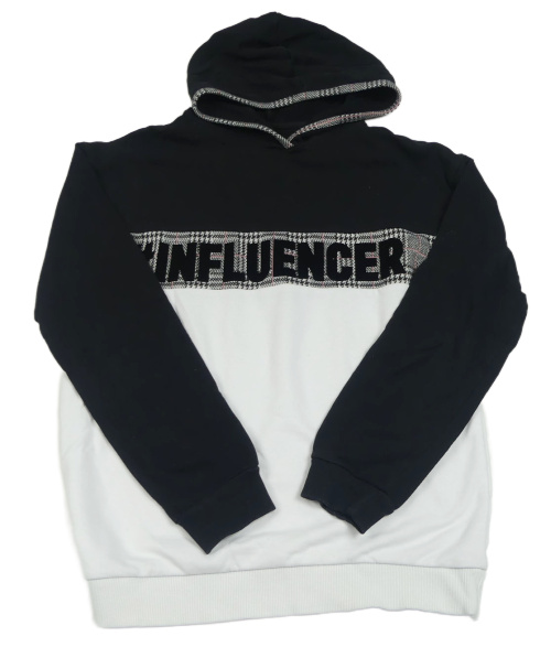 Černo-bílá mikina s nápisem a vzorem a kapucí C&A