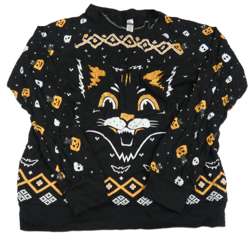 Černé mikinotriko s dýněmi a kočkou